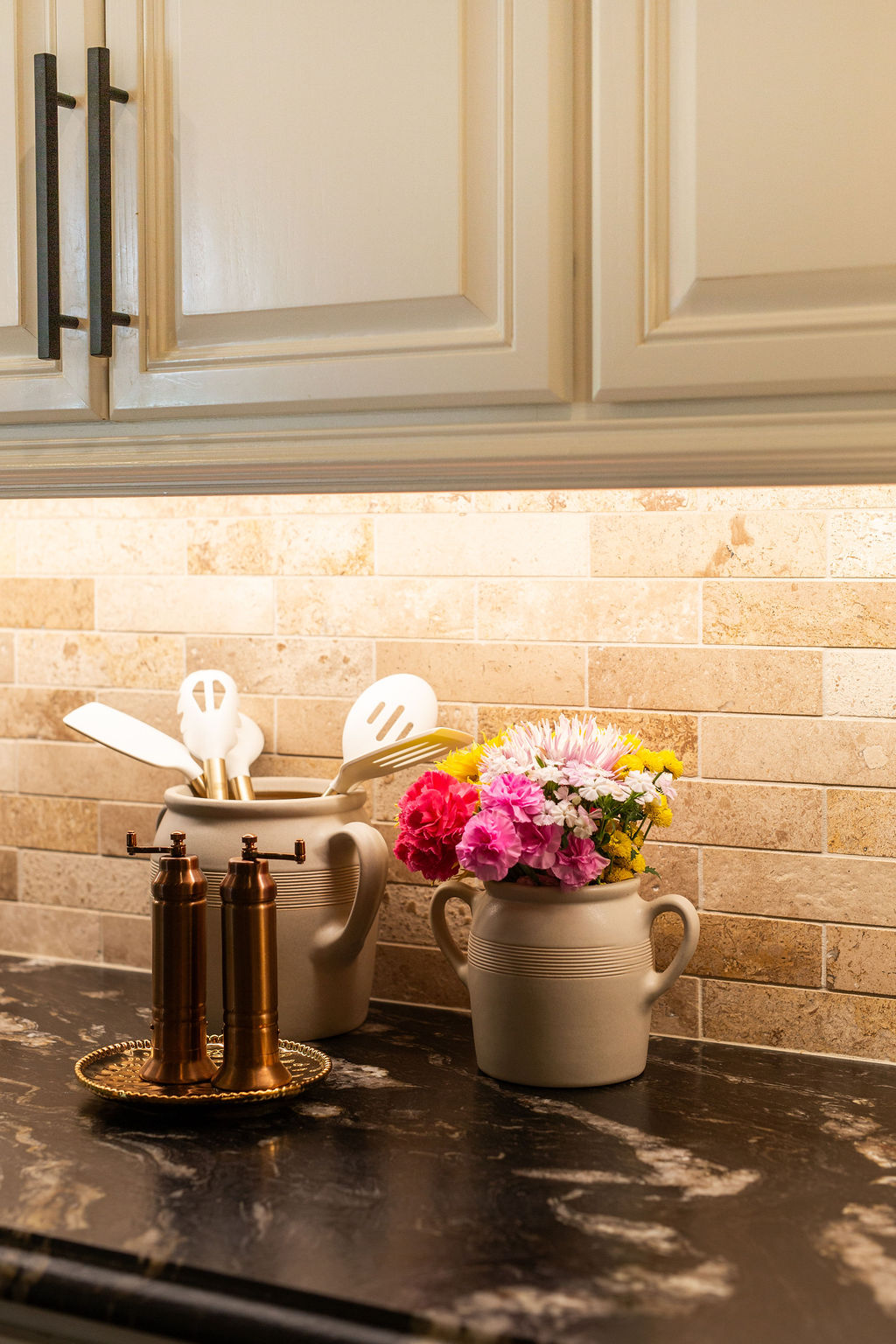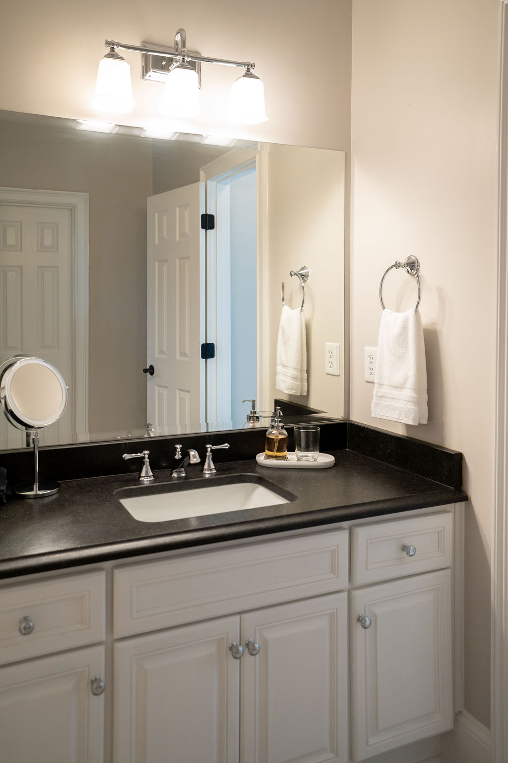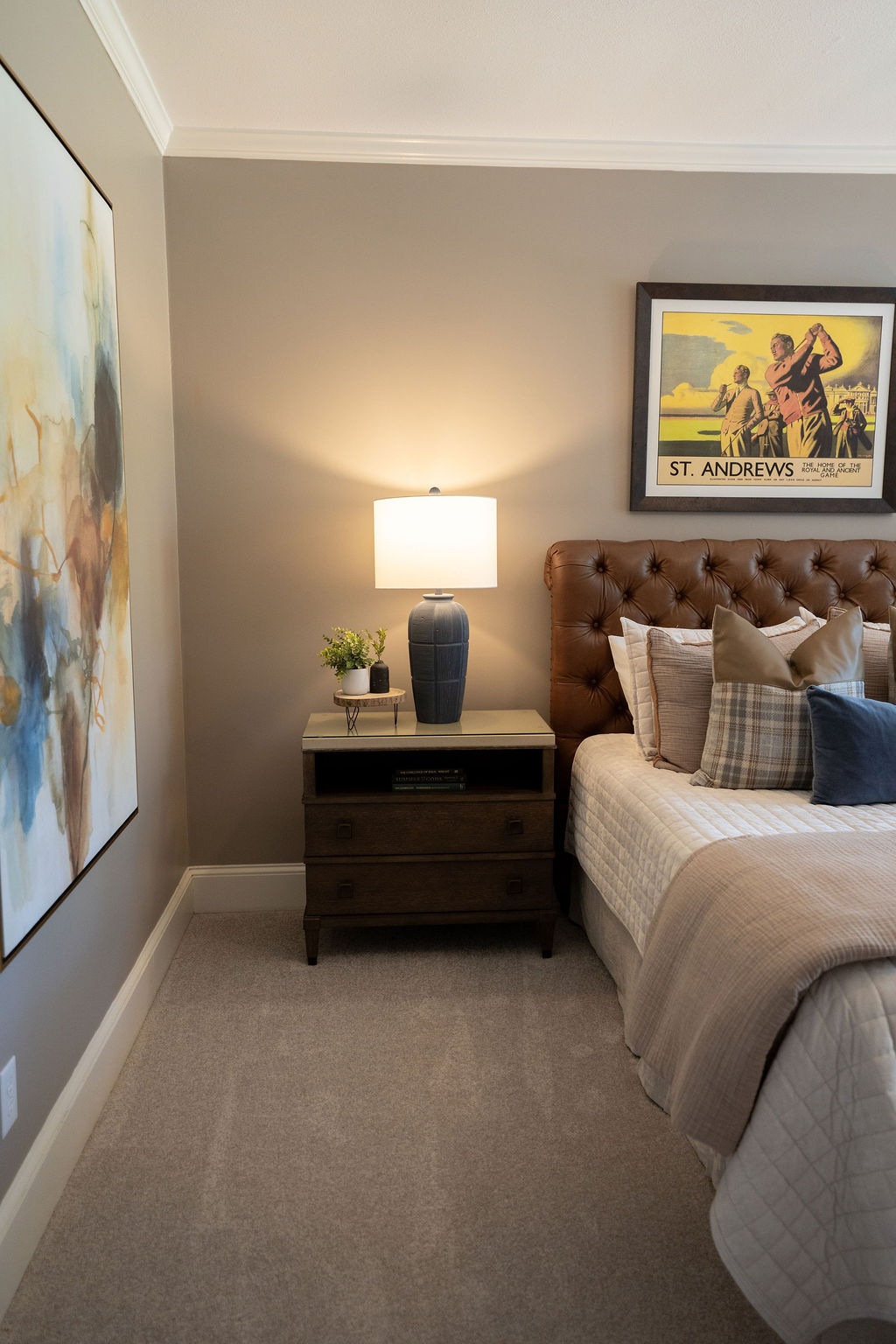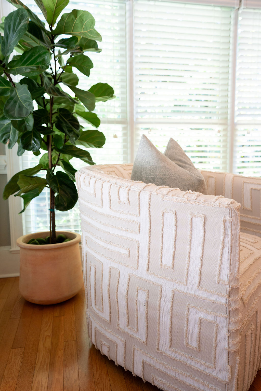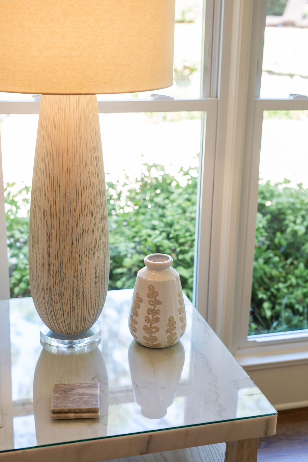 This graceful home pairs refined materials with a soft, livable palette to create spaces that feel both elevated and effortless. From the sculptural chandelier in the dining room to the tailored upholstery and layered rugs throughout, each room reflects a thoughtful balance of sophistication and comfort. Tones of ivory, blush, taupe, and pale gray flow from space to space, accented by textured fabrics, clean-lined furniture, and curated art. The result is a serene and welcoming retreat that’s elegant without being overdone – designed for real life, beautifully lived.