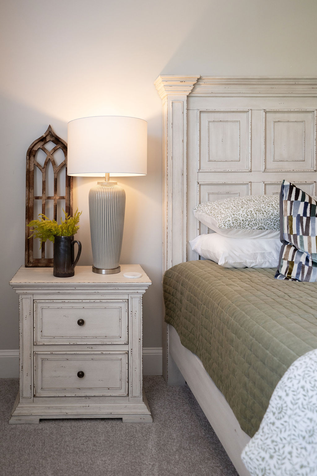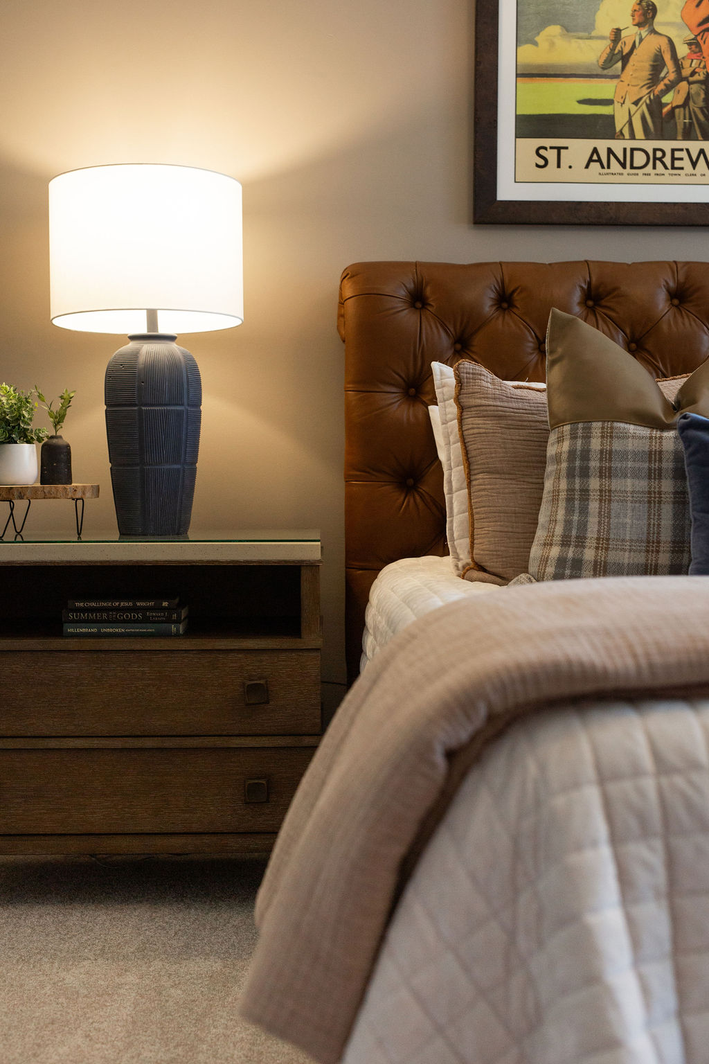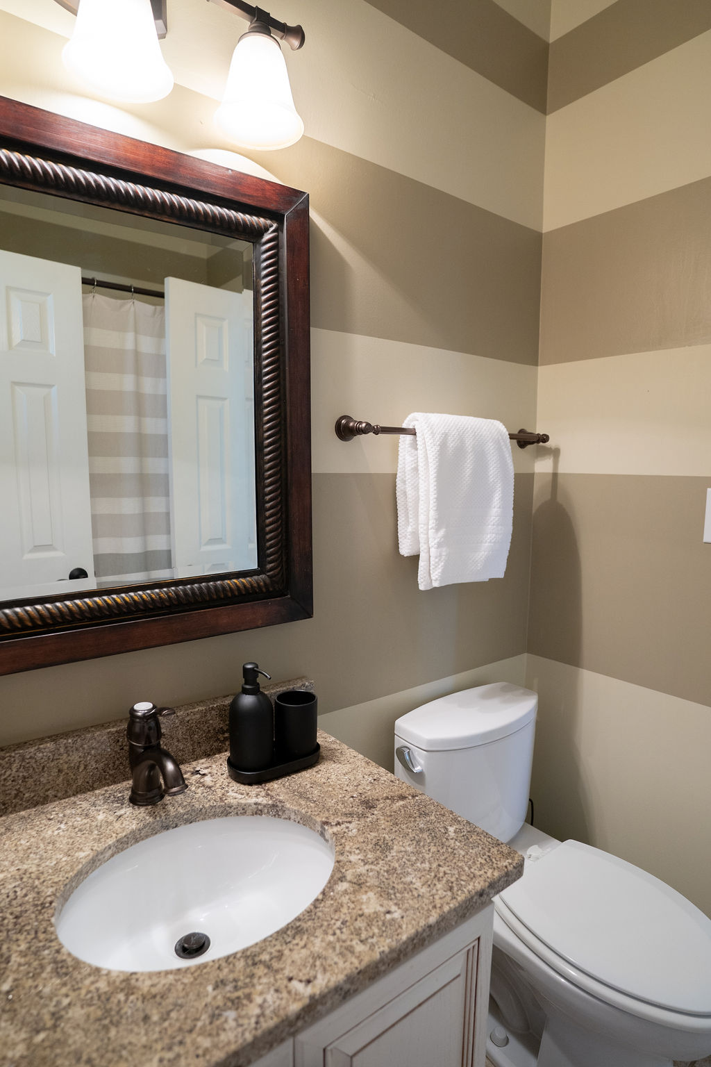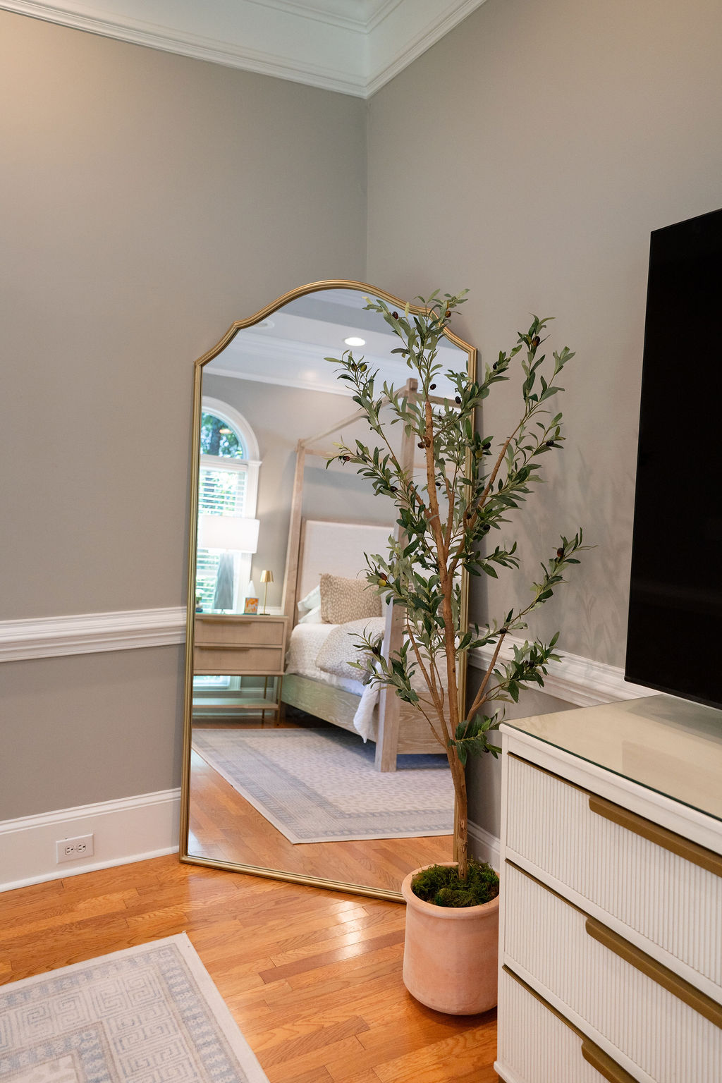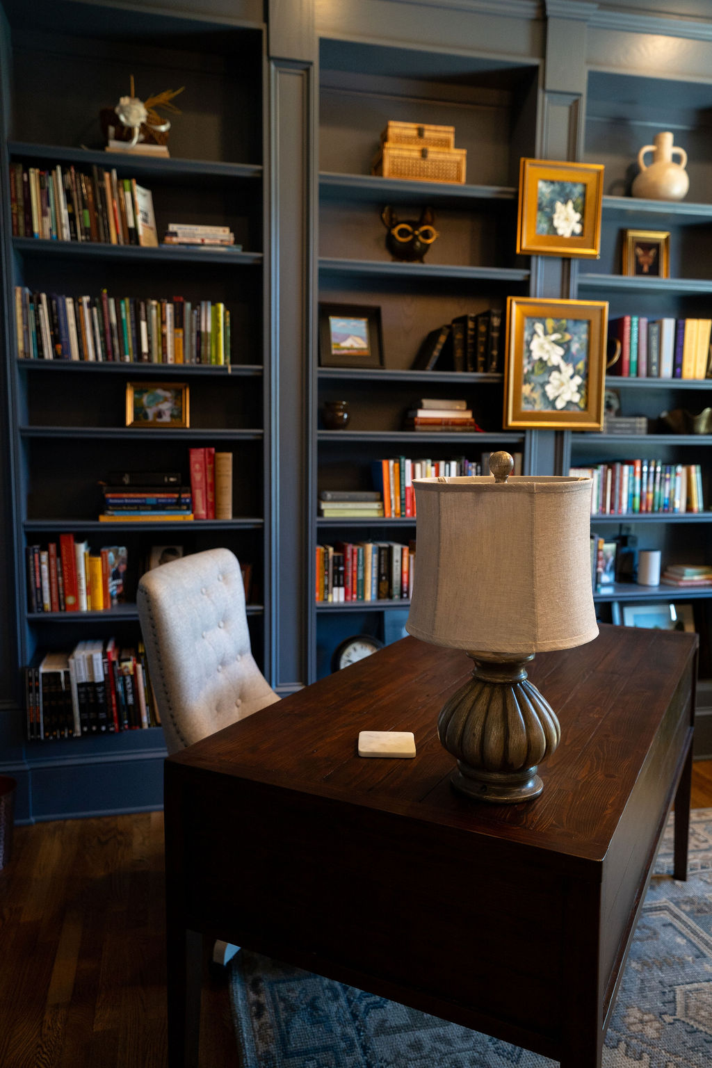 This graceful home pairs refined materials with a soft, livable palette to create spaces that feel both elevated and effortless. From the sculptural chandelier in the dining room to the tailored upholstery and layered rugs throughout, each room reflects a thoughtful balance of sophistication and comfort. Tones of ivory, blush, taupe, and pale gray flow from space to space, accented by textured fabrics, clean-lined furniture, and curated art. The result is a serene and welcoming retreat that’s elegant without being overdone – designed for real life, beautifully lived.
